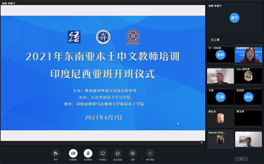 6月7日、わが校は2021年度東南アジア系中国語教師育成カリキュラムが始まった。第一回目の講義はインドネシアの教師を対象に、オンライン形式で行われた。開講式には講師一同と受講者全員のほか、漢学院院長の陳子驕氏、孔子学院事務課課長の博琼氏、インドネシアウダヤナ大学旅行孔子学院院長の陶暹光氏が出席された。