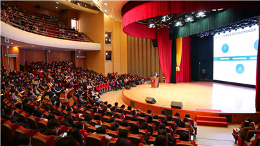 유홍 총장이 우선 “학생 양성 수준을 높이고 전환적인 발전을 이루어 높은 수준의 응용형 학부 교육을 형성한다”는 주제로 학부 교육 사업보고를 진행하였다.유총장은2012년 이래 우리대학의 학부 교육 사업이 거둔 성과를 돌이켜보았다.그는 우리대학은 지난5년간 학부 교육의 중심적 지위를 확립하고 개혁을 추진하여 인재양성 방식에서 사회의 수요에 더욱 잘 부응하게 되었고 향후의 인재양성 수준의 향상을 위해 기반을 마련하였다고 하였다.또한 현재 기회와 도전이 병존하는 배경에서 전체 교사들이 힘을 합쳐 교육관념을 전환하고 개혁을 강화하여 우리대학을 수준높은 특색이 선명한 응용형 외국어대학으로 발전시켜야 한다고 하였다.