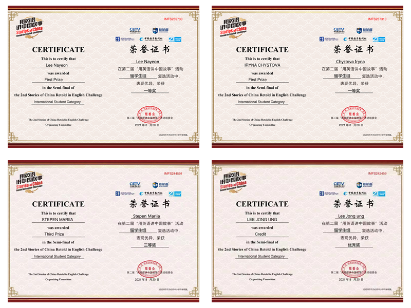최근 중국교육TV, 중외언어교류협력센터, 중국신문잡지사 등 기구가 공동으로 주최한 제2회 ‘영어로 중국 이야기하기’ 대회가 세계 청년들의 주목을 받아 100여 개국에서 온 800여 명의 선수들이 온라인에 모여 중국의 이야기를 전하였다. 우리대학 유학생들도 이번 대회에 적극 참여하여 좋은 성적을 거두었다.