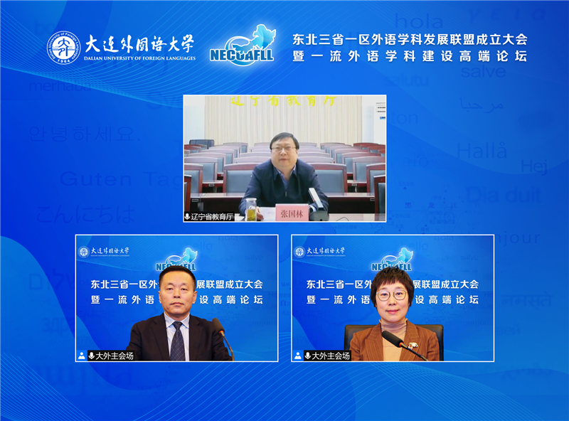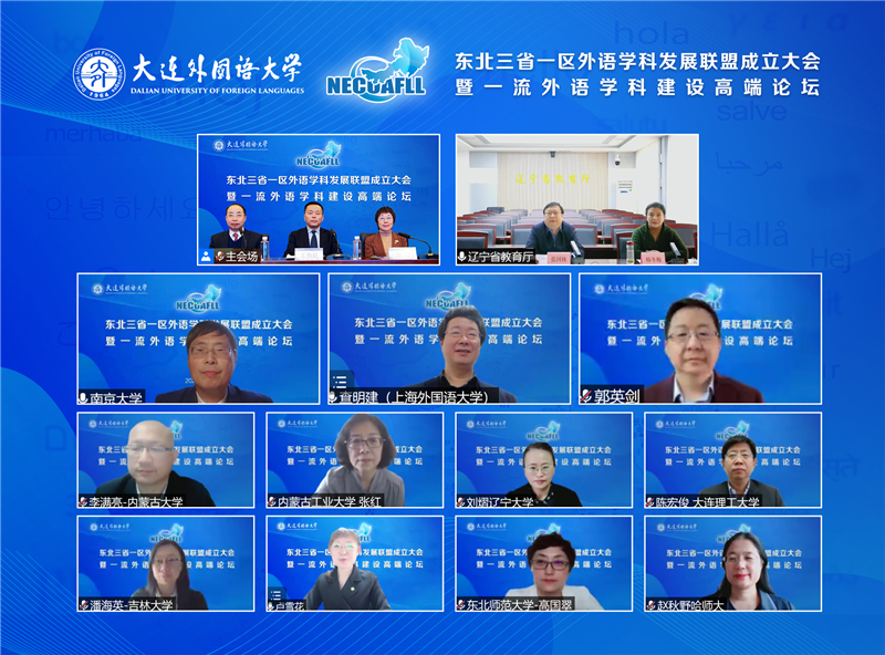 3월 25일, 동북 3성 1구 외국어학과발전연맹 설립 총회 및 일류 외국어학과 건설 프리미엄 포럼이 다롄외국어대학교에서 온라인 방식으로 열렸다. 랴오닝성 교육청 관계자, 네이멍구·랴오닝·지린·헤이룽장 등 성과 지역의 36개 연맹 대학과 국내 외국어학과 분야의 저명한 석학들이 모여 동북 지역 최초의 외국어학과 발전연맹 출범을 지켜보며 일류 외국어학과 건설과 발전 전망을 논의하였다.
