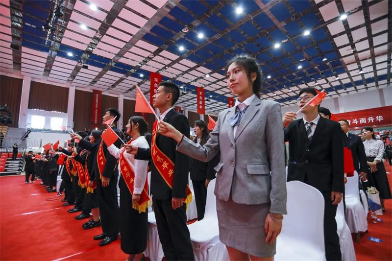 격앙된 국가가 울려 퍼지고 국기가 천천히 게양되면서 졸업식이 시작되었다. 류펑광 부총장이 졸업생 명단과 성, 시 우수졸업생 명단을 낭독했고, 대학 관계자들이 성, 시 우수졸업생 대표에게 명예증서, 졸업생 대표에게 졸업증서와 기념 배지를 수여하였다.