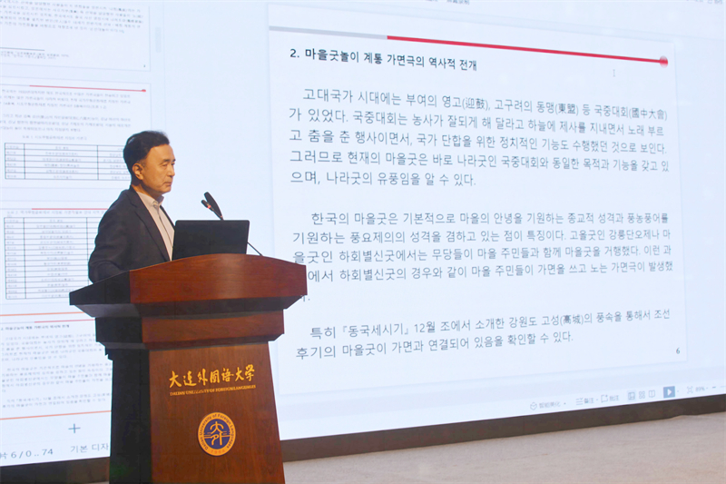 한국 남해문화원 김미숙 사무국장과 대련외국어대학교 장궈창 교수는 각각 ‘한국 가면극의 기원 및 전승’, ‘중국 무문화와 가면극의 전승’이라는 제목으로 양국 가면극의 기원과 전승에 대해 자세히 설명했다. 김미숙 국장은 한국의 대표적인 탈놀이인 산대놀이의 기원과 종류, 공연시기와 지역적 특성을 이야기하며 전통 탈놀이의 발전 현황과 전환 과정을 소개했다. 장궈창 교수는 문헌자료와 현지조사를 통해 중국의 무문화와 가면극을 북방의 샤머니즘 문화와 남방의 나문화의 두 체계로 나누고 그 역사적 모습과 오늘날의 전승 상황을 간략하게 설명했다.