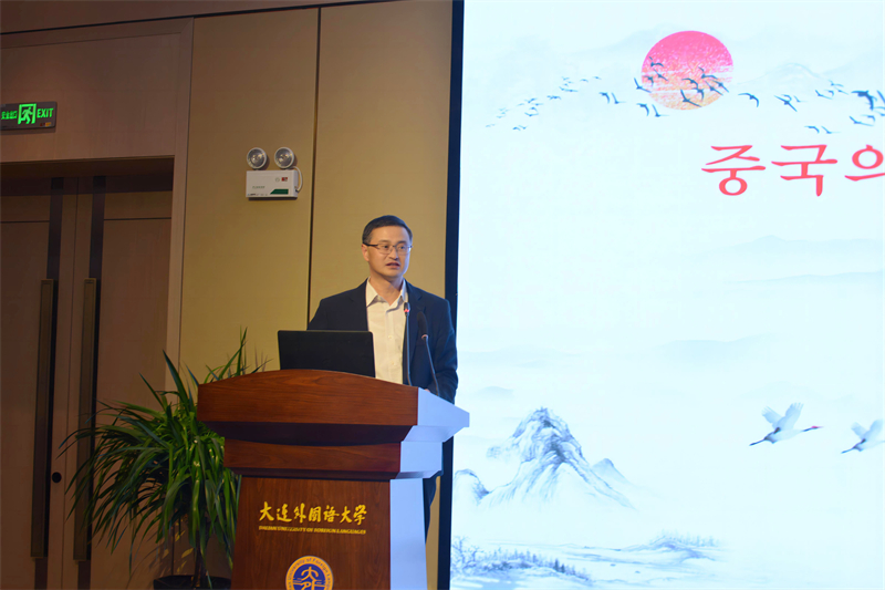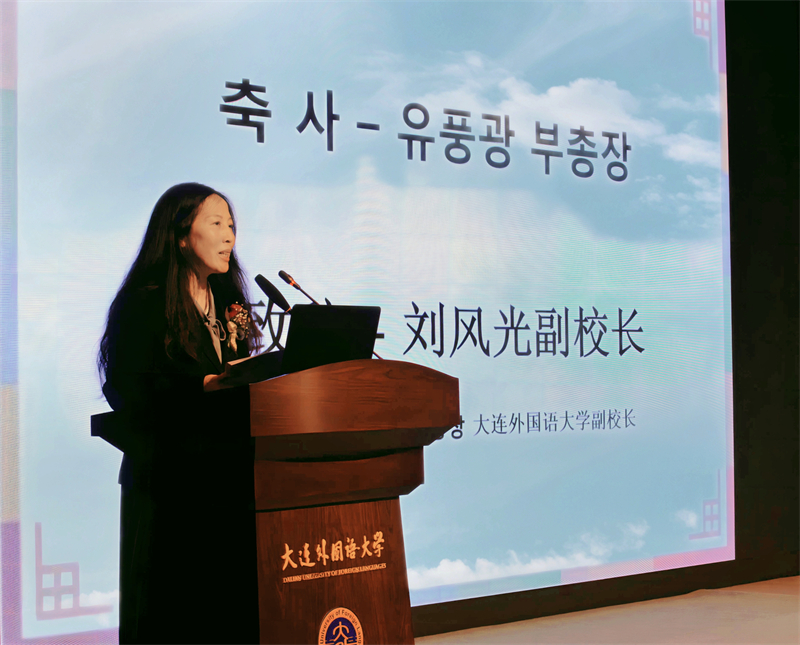 유풍광 부총장은 이번 심포지엄 개최를 진심으로 축하하며 한국문화원, 한국동서문화연구원의 전폭적인 성원에 깊은 감사를 표했다. 그는 대련외국어대학교의 발전 연혁과 학교 운영특색을 소개하고, ‘14차5개년 계획’ 이래 한국어대학이 인재양성, 학과건설, 교수연구 등의 방면에서 얻은 성과를 충분히 긍정하면서, 이번 심포지엄의 원만한 성공을 기원하였다.