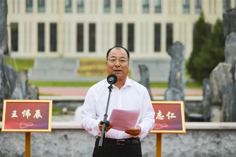 총밍차이 우리대학 당위원회 부서기는 연설에서 동문광장의 초기 구상, 계획 설계, 부지 선정에 이르는 과정을 설명하고 동문광장의 설계 배치와 현실적 의의를 소개하고 동문광장 건설을 적극 지원한 동문, 동문 기업, 학교 교직원 및 퇴직 교직원들에게 숭고한 경의와 감사를 표한다고 하였다. 그는 대학은 항상 동문 자원을 중시해 왔으며 동문 광장은 외대 동문들에게 영원한 정신적 터전이 되고 동문들의 힘을 결집할 수 있는 넓은 플랫폼을 제공했다고 하면서, 대학교도 이번 준공을 계기로 동문과 대학 발전의 공동체를 구축해 대학 발전의 새 장을 쓸 것이라고 했다.
