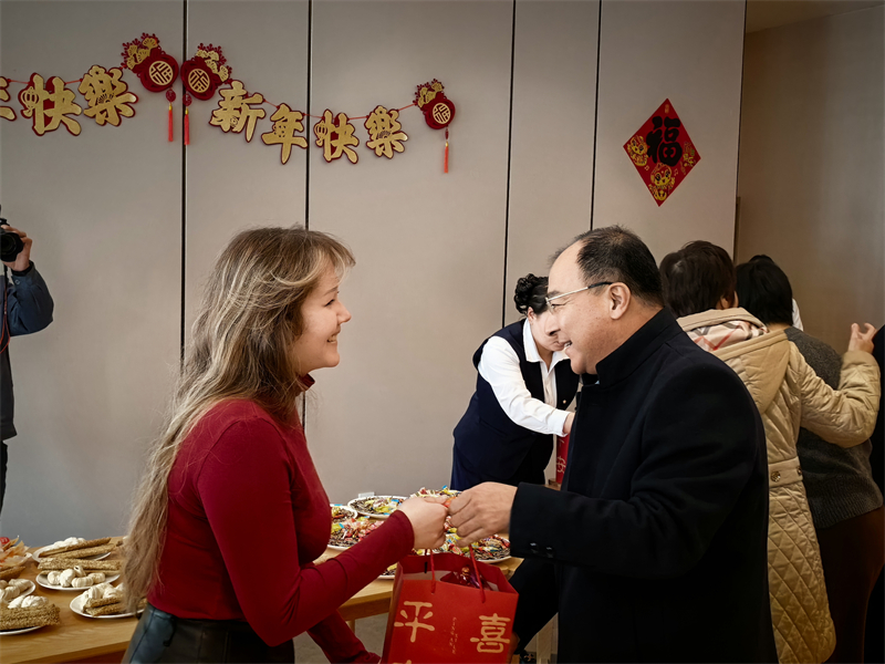 중외 교사와 학생들은 춘련을 붙이고 만두를 빚으며 함께 둘러앉아 풍성한 설날 저녁 식사를 즐겼다. 이러한 행사는 외국인 교사와 학생들에게 중국 춘절의 독특한 매력을 느끼게 했을 뿐만 아니라, 중국 교사와 학생들이 전통 명절에 대한 이해를 깊이 했다.