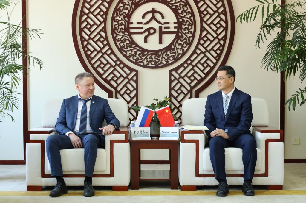 장궈창 부총장은 카르니코프 총장 일행의 방문을 환영하고 나서, 우리대학의 설립 역사, 학과 전공 설정, 교사 양성, 인재 양성 상황 및 국제화된 교육 특성을 소개했다. 그는 ‘신문과’ 건설과 인공지능의 고속 발전 배경 하에, 우리대학은 ‘외국어+전공’ 건설을 깊이 있게 추진하고 있으며, 공과대는 이공계 학과 등 분야에서 국제 최전선에 있다고 하면서, 두 대학교가 서로의 장점을 보완하여 인재 양성, 교원 양성, 인문 교류 등 분야에서 실질적인 협력을 이루기를 희망한다고 하였다.