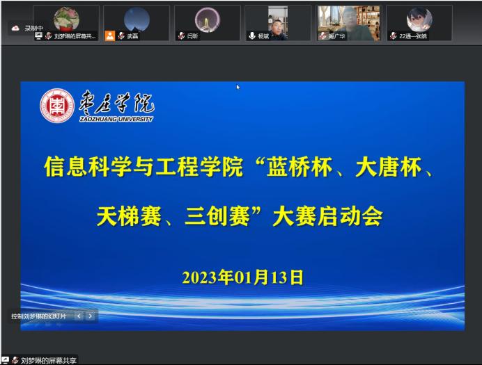 1月13日下午,信息科学与工程学院召开线上“蓝桥杯、大唐杯、天梯赛、三创赛”大赛启动会。学院党总支书记姬广华、院长闫昕、副书记查明、副院长杨斌,大赛指导教师、校企合作工程师和150余名学生参加启动会。杨斌主持会议。