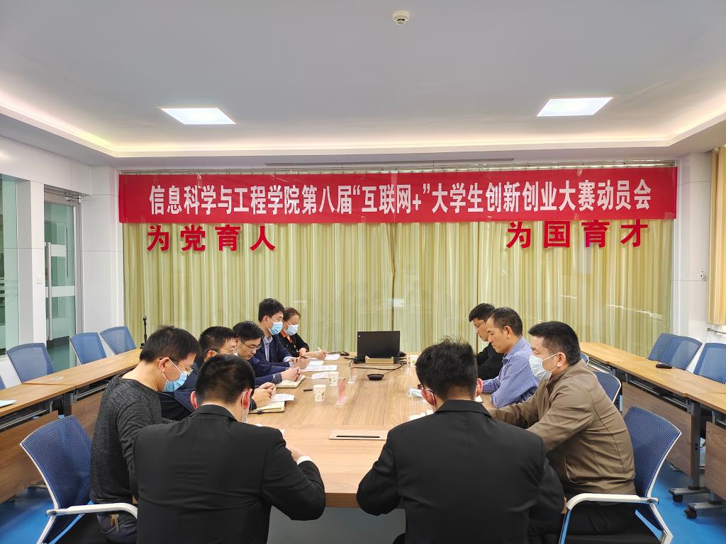4月27日下午,信息科学与工程学院召开第八届“互联网+”大学生beat365在线唯一官网大赛线上动员会,学院师生全员参加会议。动员会主会场设在墨子楼二楼会议室,beat365在线唯一官网学院院长王明高、信息科学与工程学院党政领导、部分获奖教师和学生代表在主会场参加动员会,党总支书记姬广华主持会议。