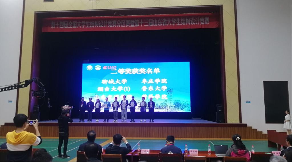 2021年5月16日,由山东省大学生结构设计竞赛委员会主办,烟台大学承办,烟台飞龙集团有限公司、鲁东大学等协助承办的第十四届全国大学生结构设计竞赛分区赛暨第十三届山东省大学生结构设计竞赛在烟台大学圆满落幕。beat365官网城市与建筑工程学院代表队参赛结构“复兴桥”在全省三十三个队伍中脱颖而出,取得了二等奖(全省第七名)的优异成绩,并获得全省唯一“最佳制作奖”。