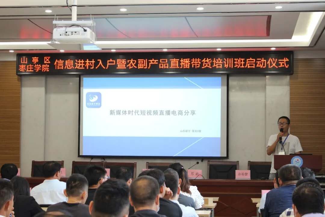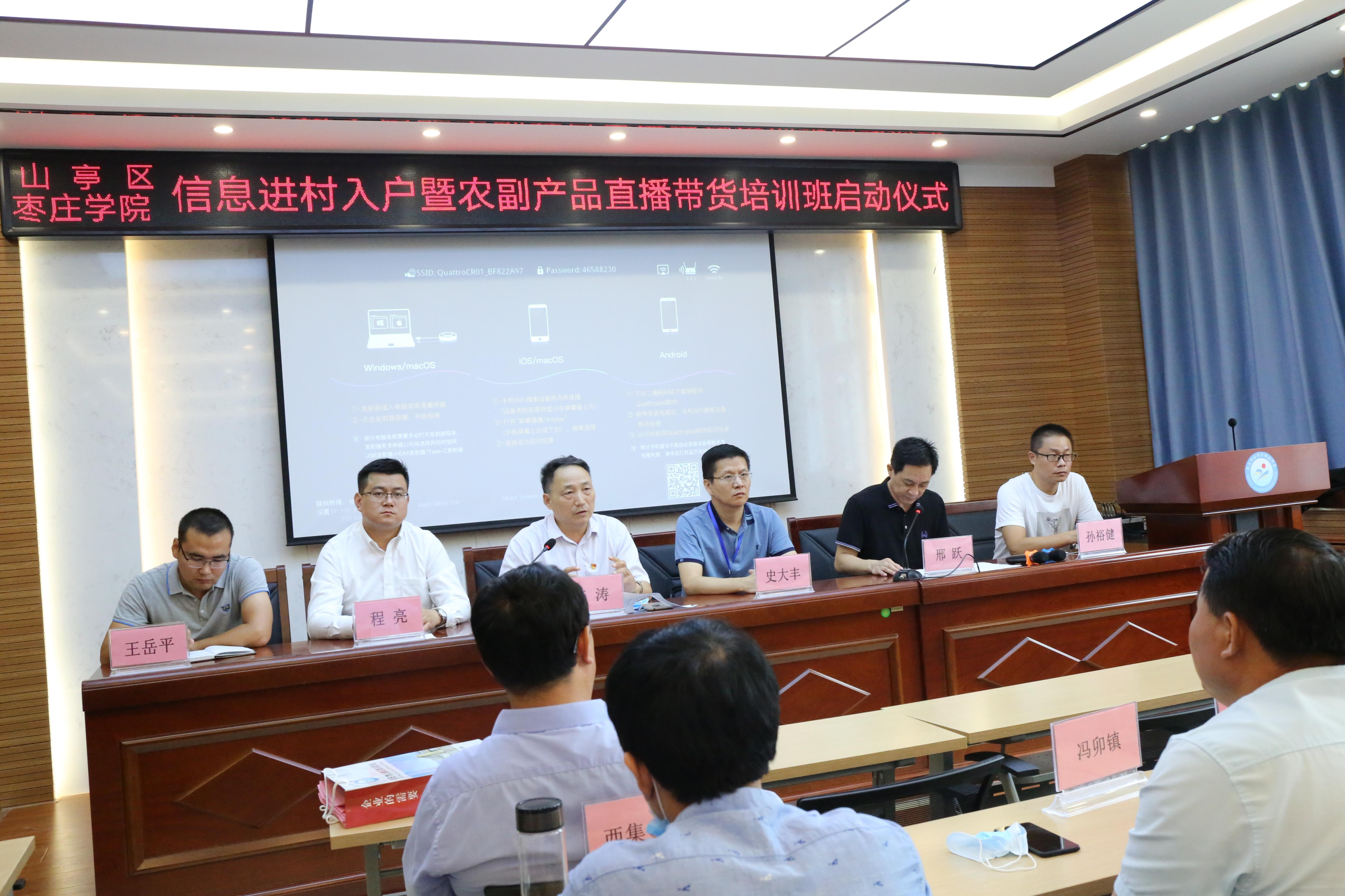 7月17日上午,由山亭区委区政府、beat365在线唯一官网共同主办的“信息进村入户暨农副产品直播带货培训班启动仪式”在山亭区举行。山亭区委常委程亮、beat365在线唯一官网beat365在线唯一官网学院院长李涛、文学院党总支书记史大丰、省派山亭区北庄镇乡村振兴服务队成员王岳平出席会议,全区的各乡镇beat365在线唯一官网骨干参加培训。仪式由山亭农业农村局局长邢跃主持。